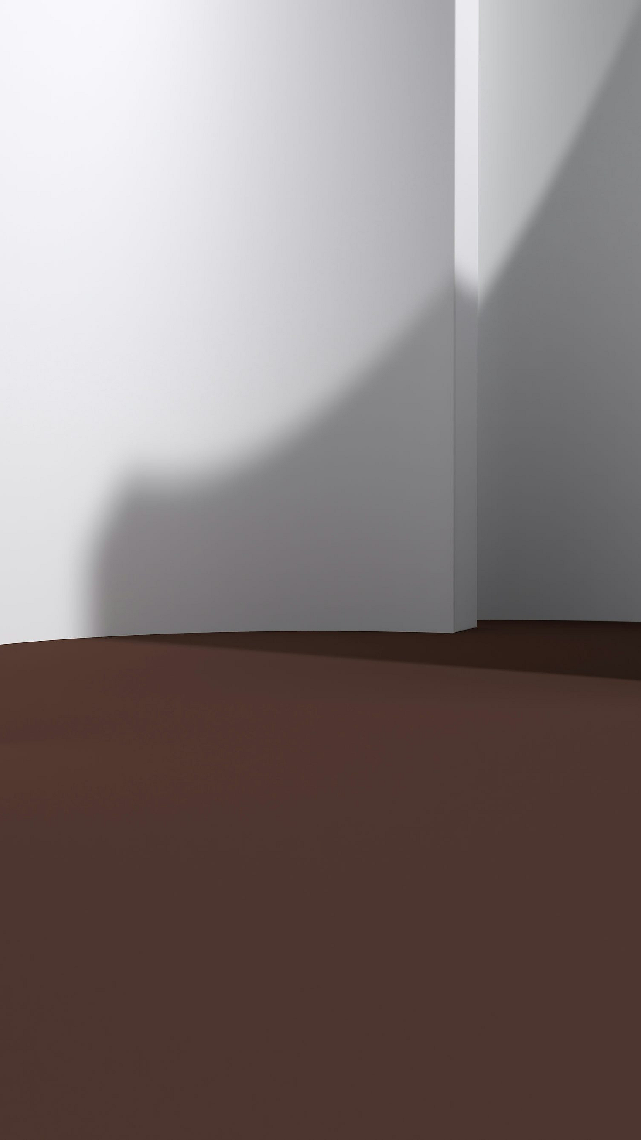 This wallpaper features a minimalist design showcasing a white room with a brown floor and white walls. The image evokes a sense of calm and serenity, perfect for creating a spacious and airy feel in your digital space. The neutral color palette makes it a versatile option for various backgrounds and themes.